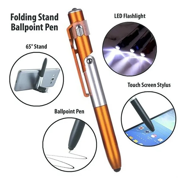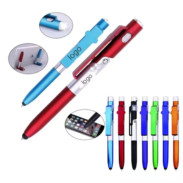 Description:4-in-1 Capacitive touch screen stylus + ballpoint pen + LED Flashlight + Device Support Brand new and made by high quality plastic Works as a normal ballpoint pen (slide button pen click) Built-in Clip can be used to support & hold tablets and smartphones Soft Built-in rubber tip works with any device with a capacitive touch screen like iPhone, iPad Compatible with tablets and smartphones such as Apple iPad, iPhone, iPod, Kindle Fire HD and any other touch screens