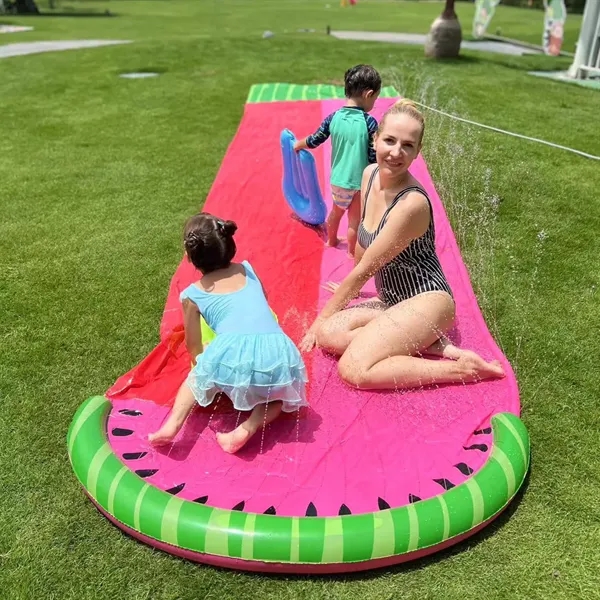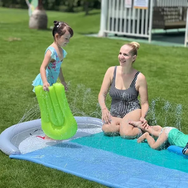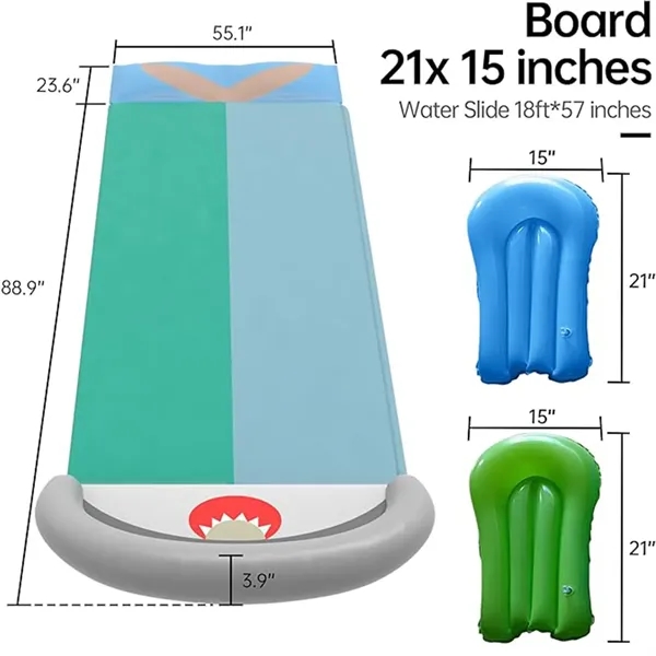 Description:This slip water slide, featuring a vibrant color scheme and fun shark design, brings joy to any backyard, and kids will love it. Measuring 18ft by 4.8ft, it has a playful shark pattern that appeals to both boys and girls. The slide includes sprinkler holes on both sides for maximum wetness, enhancing the sliding experience. Just connect the water pipe, and the entire slide becomes soaked, allowing kids to race, splash, and play in the water. The water is evenly distributed along the slide, ensuring a smooth, slippery ride with plenty of splash action. Perfect for endless summer fun, the double lanes encourage friendly competition and active play. Set up this slide in your backyard to keep kids entertained, active, and cool all summer long.