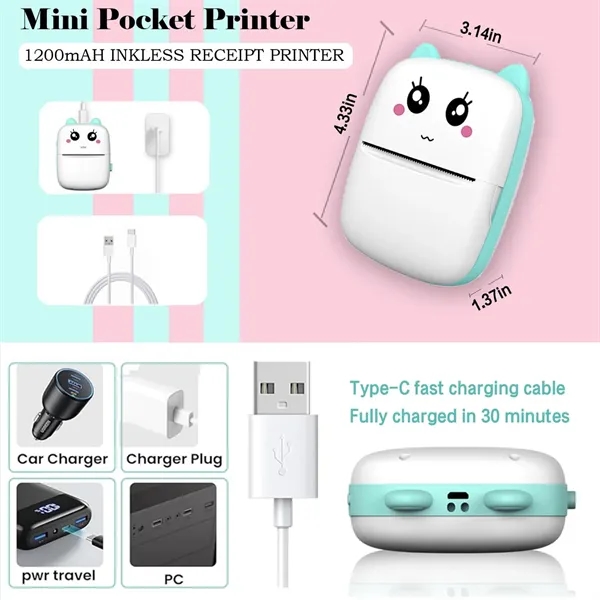 Description:Our environmentally friendly thermal receipt printer is designed for convenience and portability, using advanced thermal technology that requires no ink cartridges and provides clear, high-resolution prints at 203dpi. This compact device, measuring only 11x8x3.5cm, easily fits in your pocket, has a 1000mAh battery that lasts up to 15 hours on a full charge, and offers a one-week standby time. It connects effortlessly via Bluetooth 4.0 through the iprint app, enabling quick and simple printing of photos, labels, stickers, notes, and QR codes anytime, anywhere. Perfect for students, professionals, and creatives, it’s a versatile tool for on-the-go organization and a great gift option for any occasion.
