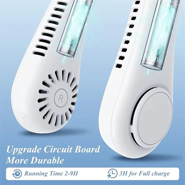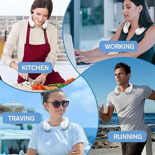 Description:Stay cool at all times with our rechargeable neck fan, featuring a bladeless and bladeless design for safety and comfort.Enjoy quiet 360 cooling on our personal fan with 78 air vents and 5 adjustable speeds with a powerful 4000mAh battery.The upgraded airflow provides the ultimate relief in any hot weather, while the low noise level ensures minimal disturbance to your surroundings. Our careful and elegant design is perfect for use on the go, keeping you looking and feeling great wherever you are.Experience the best in personal comfort and convenience with our innovative and stylish bladeless personal fan.