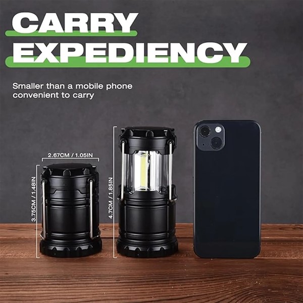 Description:Equipped with thirty bright LED bu , our LED Lantern delivers up to 140 lumens with a 360-degree lighting effect, perfect for emergencies like storms and power outages. Powered by three AA batteries, it provides up to fifty hours of bright light. Its collapsible design makes it as portable as a smartphone, ideal for camping and hiking. Constructed with military-grade ABS material, it withstands drops and water exposure. FCC certified and RoHS compliant, it also features a convenient storage compartment for keys, change, or spare batteries.
