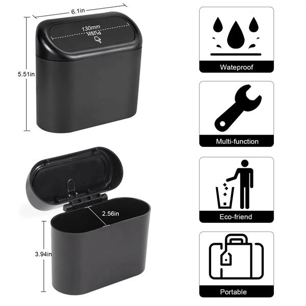 Description:Our space-saving mini car garbage can is designed with a convenient bounce cover to seal in odors, keeping your vehicle fresh. This handy trash bin allows for effortless disposal and features a sturdy hook for easy installation on the door edge or back seat. Made from high-quality, environmentally friendly materials, it ensures maximum strength, durability, and hygiene. It’s the perfect addition to your car’s interior, helping maintain a clean and tidy environment for you and your passengers.