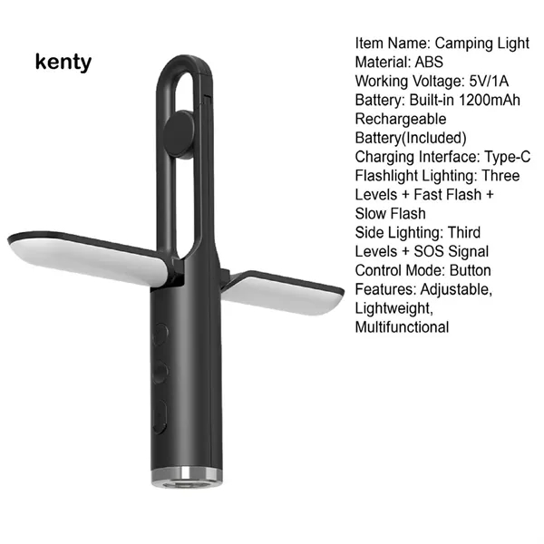 Description:Illuminate your adventures with our versatile camping light, designed to function as both a camping light and a flashlight with two lighting modes. Powered by a durable 1200mAh battery, it offers up to 10 hours of continuous lighting on a single charge. Its portable, foldable design makes it ideal for camping, traveling, or hiking. Choose between a stable stand or suspension for adaptable lighting options. Made from high-grade materials, this light ensures bright, stable illumination in any environment, providing safety and reliability wherever you go.