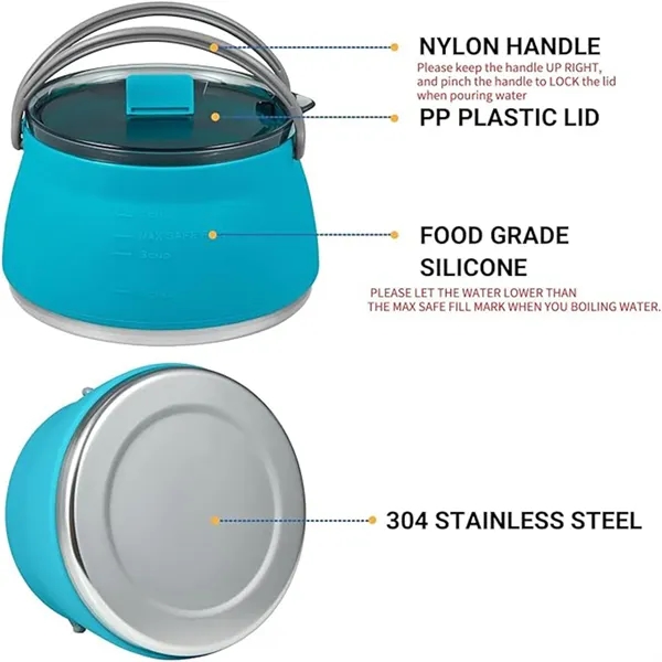 Description:Conquer your next adventure with this ultra-portable camping kettle. Designed for explorers with limited space, this lightweight wonder collapses flat for effortless packing in backpacks, campers, motorcycles, or boats. Crafted from food-grade silicone, it’s durable, safe, and odorless. The stainless steel base ensures even heat distribution for rapid boiling, while the translucent lid accelerates heating and saves fuel. Its collapsible design and comfortable nylon handle make it a must-have for boiling water on the go, without sacrificing safety or taste.