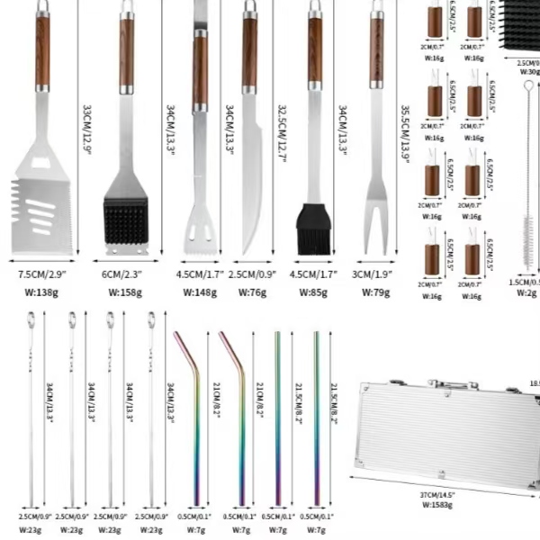 Description:The barbecue accessories are made of super-thick and strong professional-grade stainless steel, which is more durable and safer than other barbecue utensils because they will not bend, crack or rust after long-term use. This barbecue set has the perfect thickness and can perform well in your barbecue, thus raising your barbecue experience to a new level. The hanging ring design is convenient for storage when it is stopped. Our barbecue set is equipped with exquisite portable boxes, so when you are storing or going out, all barbecue accessories are put in the storage box neatly and orderly. In addition, barbecue tools can be easily washed with warm soapy water, or thrown into the dishwasher so that they can be ready for the next barbecue.