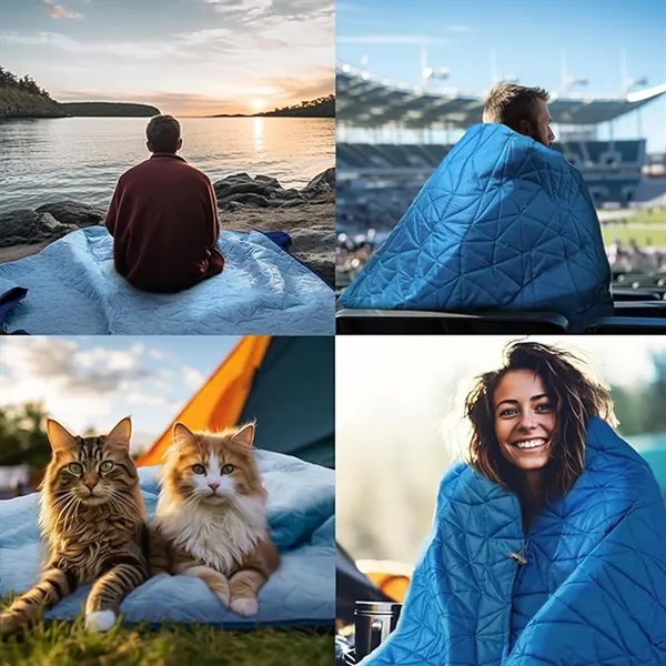 Description:stay warm and dry in the bleachers, while lovingly supporting your kids at the football,soccer,hockey,softball,other sports or family event,boat,festival,or enjoying the great outdoors;your all purpose blanket has a tough blue water and wind resistant polyester backing and gray anti-pill polar fleece to give you the best cosy feel.lightweight blanket can save you from life’s little or big mistakes by being a moisture barrier to unwanted spills;spread the mat under the baby high chair indoors,or put it on the car seat for the dog or pet to travel on;then just throw it in the wash and roll up for storage in its stuff sack.ultrasonically quilted,the 2 layers can’t slide on each other,maximizing safety;at quality materials it is in this price range;a special double coating has been sprayed in