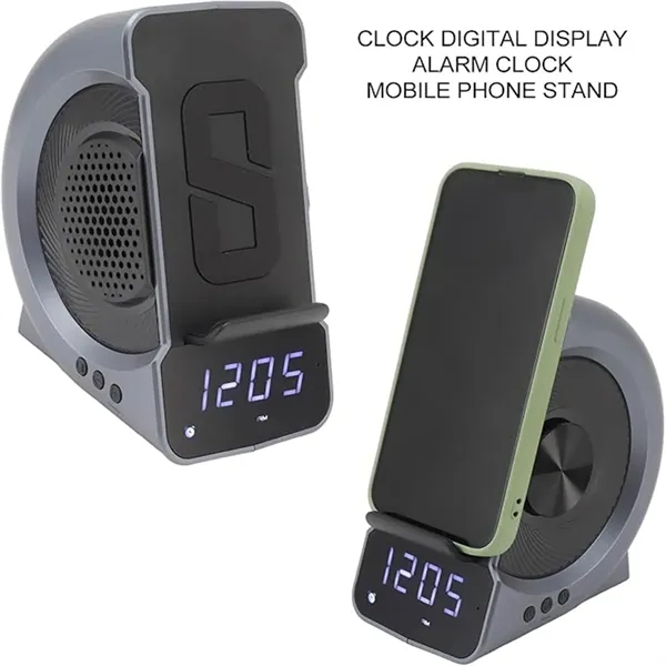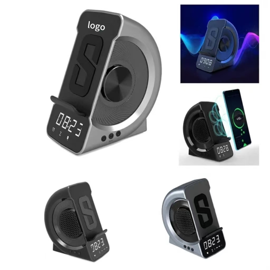 Description:It is both wireless charging and Bluetooth audio and clock alarm clock This wireless charger has 12 major features such as wireless charging, wired charging, horizontal and vertical charging, wireless Bluetooth, TF card, audio input, hands-free calling, USB charging, FM radio, clock digital display, alarm clock, mobile phone holder, etc.Typical value-for-money design.This wireless charger has wireless charging + wired charging, just put the mobile device on the wireless charger connected to the power supply, you can easily complete the charging, the charging process is simple and convenient.Wireless Bluetooth plus wireless music, when the mobile phone is charging or idle, you can relax with a music while charging.