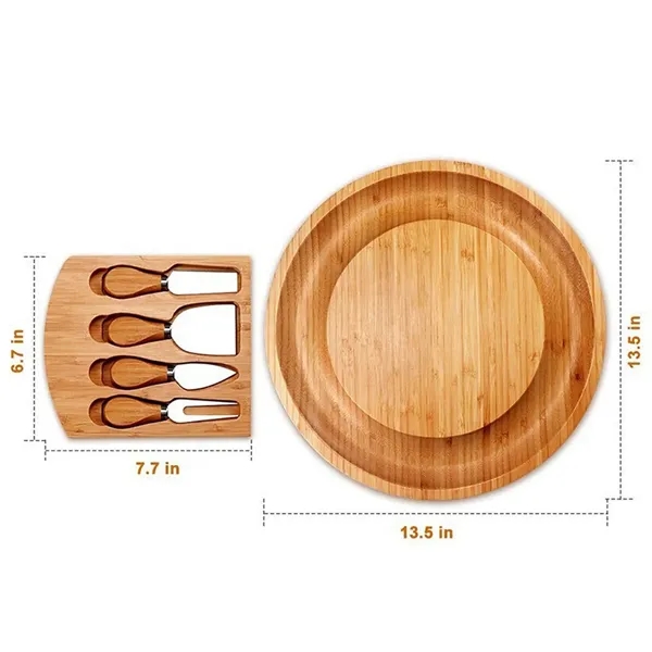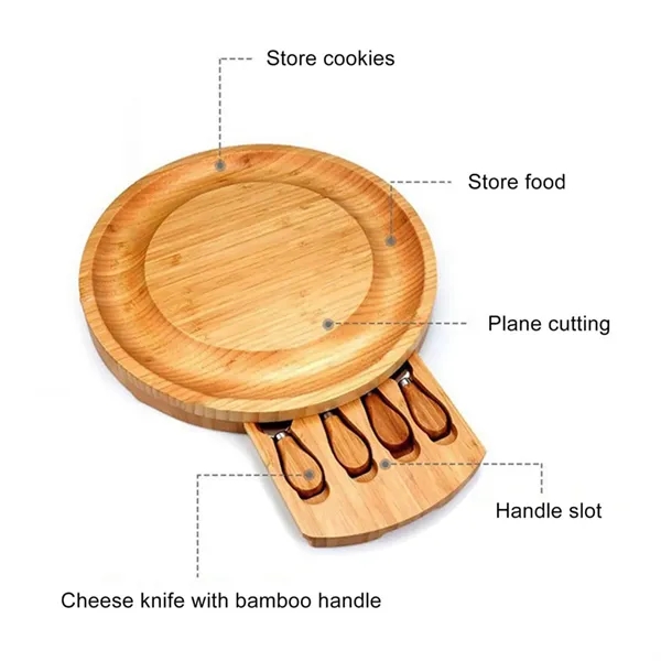 Description:This bamboo cheese board is made of 100% natural bamboo, safe and durable, and it features food-grade level to ensure the health of you and your family.Can be used to make cheeses, appetizers, fruits, delicious meats.The wooden board is equipped with a storage slot and a unique tool holder, it can be organized, equipped with a handle, easy to grasp, and it is portable.Clean this wooden board with warm soapy water or a damp cloth to avoid staining or absorbing odors. This wooden board features elegant bamboo pattern finishes and warm bamboo colors to add a sense of fashion to your kitchen and activities.This wooden board is a fabulous gift for housewarming, bridal shower, engagement, wedding, anniversary, retirement, birthday, Christmas or holiday.
