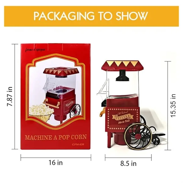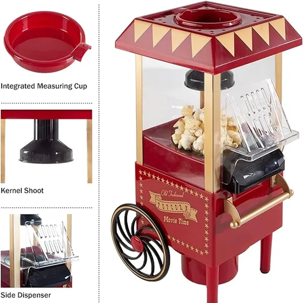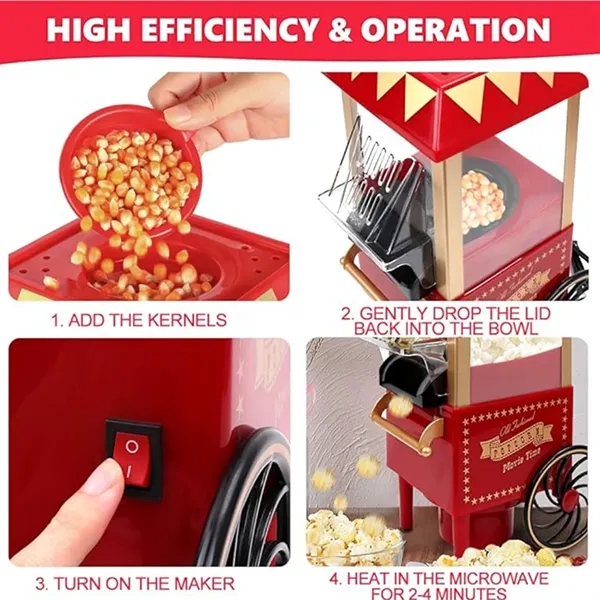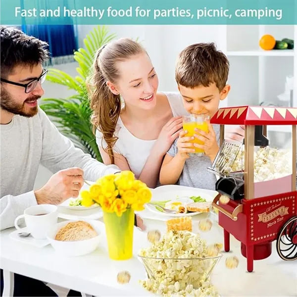 Description:The oil-free popcorn machine uses hot air to efficiently pop 16 cups of fresh popcorn without any oil or preservatives. This results in delicious, low-fat, all-natural popcorn, free from artificial flavors or added salt. Customize the flavor with your favorite toppings like sugar, chocolate, butter, sea salt, coconut oil, cheese, or peanut butter. Perfect for parties, gatherings, or a cozy night in. The machine produces up to 12 cups of fluffy popcorn in under three minutes with a 98% popping rate, thanks to its uniformly heating chamber. Cleaning is easy with the removable top cover and handy measuring cup, which can also be used for storage. Its compact design ensures minimal storage space, making it ideal for home, office, picnics, or camping.