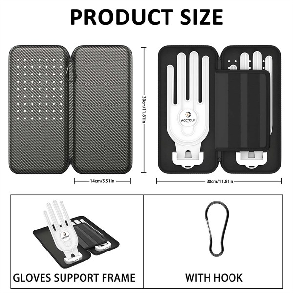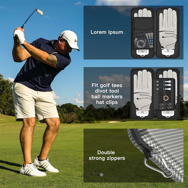 Description:Portable and Convenient: It comes with a carabiner clip that easily attaches to your golf bag. This bag keeps everything in A place, ensuring quick and easy access on the court. Extend the life of your gloves with this must-have accessory. Our portable and easy-to-use-golf glove case is a game changer. The case has a hook that attaches to your-golf bag and takes it anywhere. Durable double zippers make opening and closing a breeze, and its lightweight design makes it the perfect travel companion. This-caddy comes with 2 glove holders to prevent bumps and ventilation holes to keep them dry and keep your gloves looking brand new. KEYWORDS: golf hanger, golf hangers, holders, holder, glove, gloves, Carry-All Golf Case, Zippered Pouch, Large capacity.