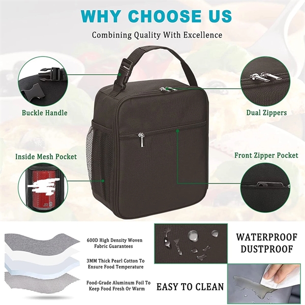 Description:Bring along a bunch of lunch of enough drinks for the whole crew in this insulated cooler tote. Made of 600 Denier Oxford fabric with a 4mm thick PEVA lined interior this 10.2 x 9 x 4.3 zippered tote has a roomy interior with a front compartment, mesh bottle pocket, carrying handle and shoulder strap. Maintains the temperature of hot and cold items. Available in assorted colors. Add your school, sports team, organizational or company logo or message to customize.