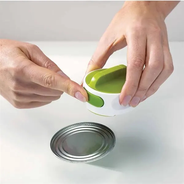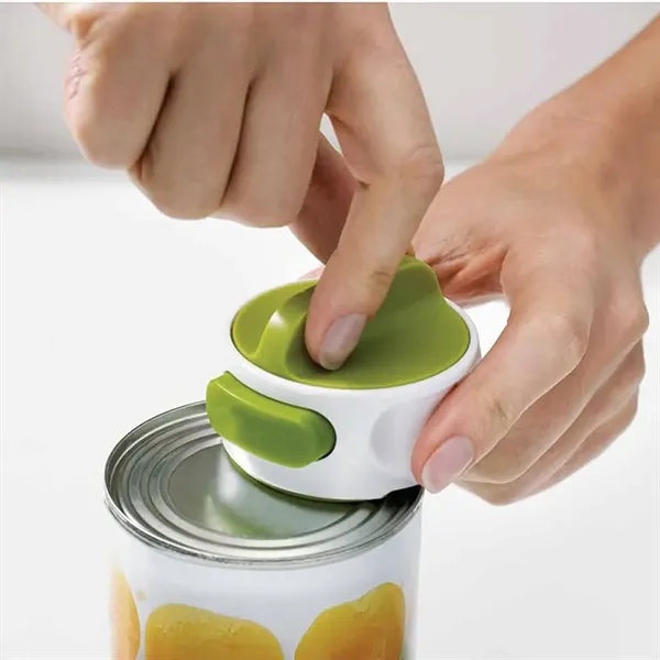 Description:Compact manual can opener with unique, circular, space-saving design. Opener automatically grips can edge as you twist. Large easy-twist mechanism cuts cleanly through the can lid. Easy-Press lid-release button removes opener from can. Dimensions: 2.6 X 2 x 2 inches (WxDxH).