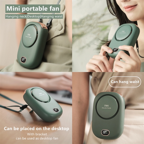 Description:The portable neck fan can truly free your hands, and enjoy the cool wind anytime, anywhere. The personal neck fan with adjustable lanyard, can hang on the neck , hands free and easy to adjust the length. The mini fan also designed with bracket, so can put on the tabletop, also convenient hang on the waist if need. Let you enjoy the cool and stylish. Built-in 2000 mAh battery, provide 3 to 7 hours duration (depend on different speeds).The wearable personal fan’s motor has been modified so that will produce lower noise during operation. Made of Eco-friendly ABS, makes the neck fan more durable and quieter.