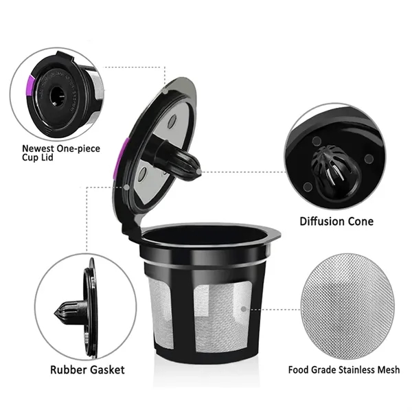 Description:It is made of high quality and 100% BPA free material, and we use 304 stainless steel mesh that is not easy to be rusty. All high-quality material makes our K cup filters not easy to twist and durable which can last for a long time. The micro mesh is perfect size to hold coffee grounds well without leaking or getting out even with fine grinding coffee grounds.