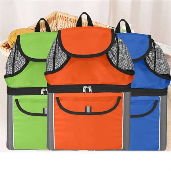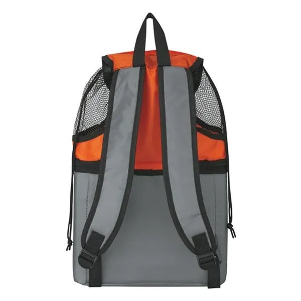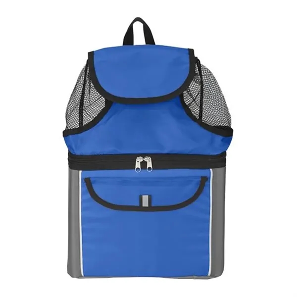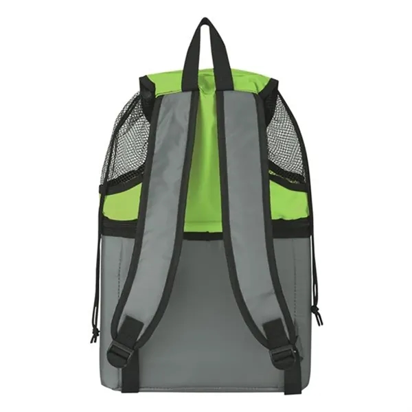 Description:Gear up for your next shore excursion with help from this all-in-one beach backpack! Measuring 12”x 17” x 5” and available in several colors, this handy item comes loaded with features, including a mesh top compartment with a drawstring and hook and loop closure, a double-zippered insulated lower compartment with PEVA lining that acts as a cooler, a front pocket with hook and loop closure, adjustable padded shoulder straps and a web handle. Spot clean/air dry. Customize with a brand imprint for increased exposure.