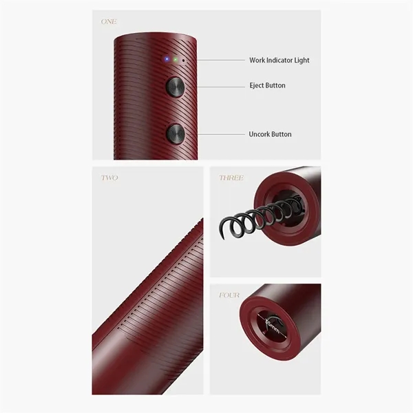 Description:Rechargeable Electric Wine Bottle Opener – Easily Remove Corks In Seconds. Compatible With Most Wine Bottle Sizes. Easy To Use – Simply Place On Top Of Your Wine Bottle, Press A Button, And Tada, Your Wine Is Open And Ready To Serve.Small Footprint Saves Space – Our Electric Wine Bottle Opener Is Small Enough To Store Discreetly Away When Not In Use. Keep The Charging Base Next To Your Wine Fridge, Storage Rack, Credenza, Etc.Makes An Amazing Present – An Elegant Color Makes Our Electric Wine Bottle Opener An Attractive Present, Or Use It At Home, When Catering, At Banquets, In Restaurants Or Behind The Bar