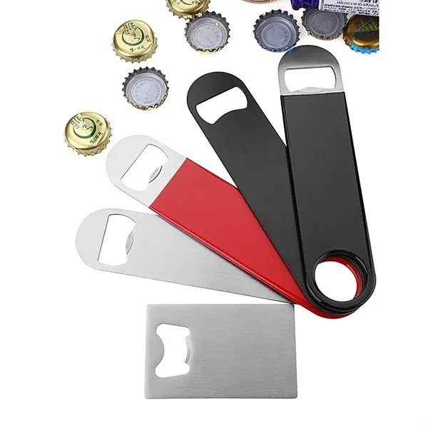Description:Made of stainless steel, sturdy and durable.Beer bottle opener in measurement 7*1.5 in, large enough and easy to grip, helping to open soda caps and beer cap easily and effectively.The bottle opener is mainly made of quality stainless steel and rubber, not easy to deform or corrode, comfortable to hold and reusable, which you can use with confidence for a long time.The flat beer bottle opener can help you easily open beer and soda bottles, simple and practical, and it is suitable for dinner parties, bars, restaurants, holiday parties, barbecues, travel, home, kitchen, and more.This bar beer bottle opener has a round hole at the bottom of its handle for easy hanging and can also be applied as a key ring to hang your keys on for a lot of convenience to carry and use.