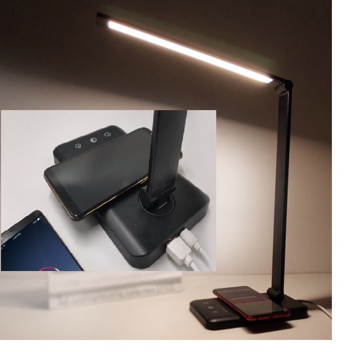 Description:Desk lamp with wireless charging and USB charging port, multiple electronic devices can be charged at the same time. Desk light supports Micro USB charging. Touch to control 5 lighting modes × 5 levels of brightness, you can freely adjust the brightness of led desktop lamp without irritating the eyes, find study lamp that suits you best. After setting the timer, led desk light will automatically turn off after 30/60 minutes (optional), no need keep thinking about turning off led lamp when sleeping. Folding design to take desk lamps to office, college, school dorm, home bedroom, etc.