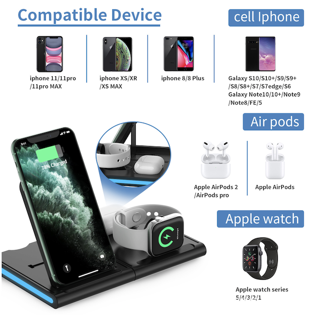 Description:Our professional charging dock is the ideal accessory for everyone nowadays. This device was designed to make your life easier by providing you an opportunity to charge your essential accessories at the same time, with just one cable. With 2 charging coils, it allows you to charge your smartphone, wireless headphones and watch in quick. This multifunctional charging dock is compatible with iPhone smartphone and iOS gadgets. Also, it is lightweight and portable, which makes it the ideal accessory to have when you travel.