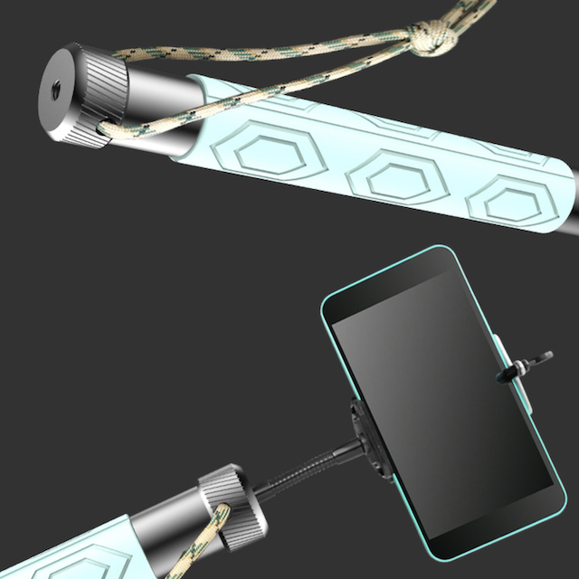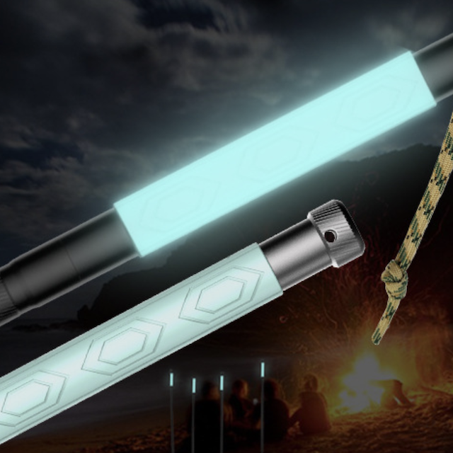Description:this produce is made of aluminium alloy and designed for multifunction use. The grip are luminous. whistle, fork, multifunctional knife, a compass, and screwdriver are included in this produce. The top of the produce can set a phone holder ( included). The length can be added as request. The common one is 3.5 feet.