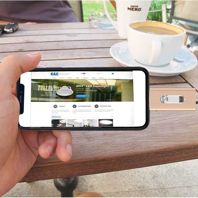 Description:This multifunctiona U disk can be used on both computers and mobiles. 4-256GB storage capacity is optional, and custom logos available.