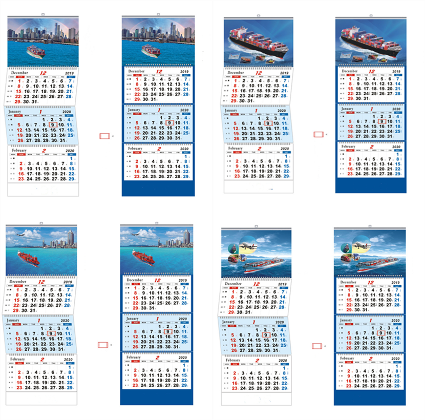 Description:The calendar can be folded four times to a quarter size.It with clearly marked dates and festivals, and writing space for daily affairs.The top with hooks can be hung vertically from the wall or even other cross sections.The calendar can print your company’s logo, address, contact number and email address.You can also change the cover image, choose the calendar format, change the size of each space, and everything you want to change.With a movable red box, there’s a better way to keep track of important issues.This will be your company’s best choice of business calendar, calendar customization, we are professional!