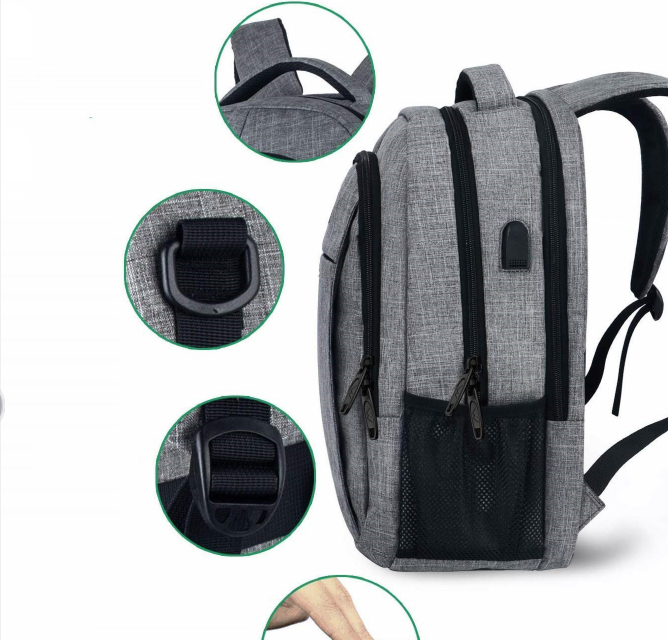 Description:For laptops under 17 inches. Main bag: Thin clothing, earphones, books, magazines, cameras, etc. . Front compartment: Pens, keys, wallet, glasses and other small things. Side Bag: Both sides are equipped with durable elastic net bag, can accommodate water bottles, folding umbrella and other items. Small back pocket: Cell Phone, Wallet, headphones.