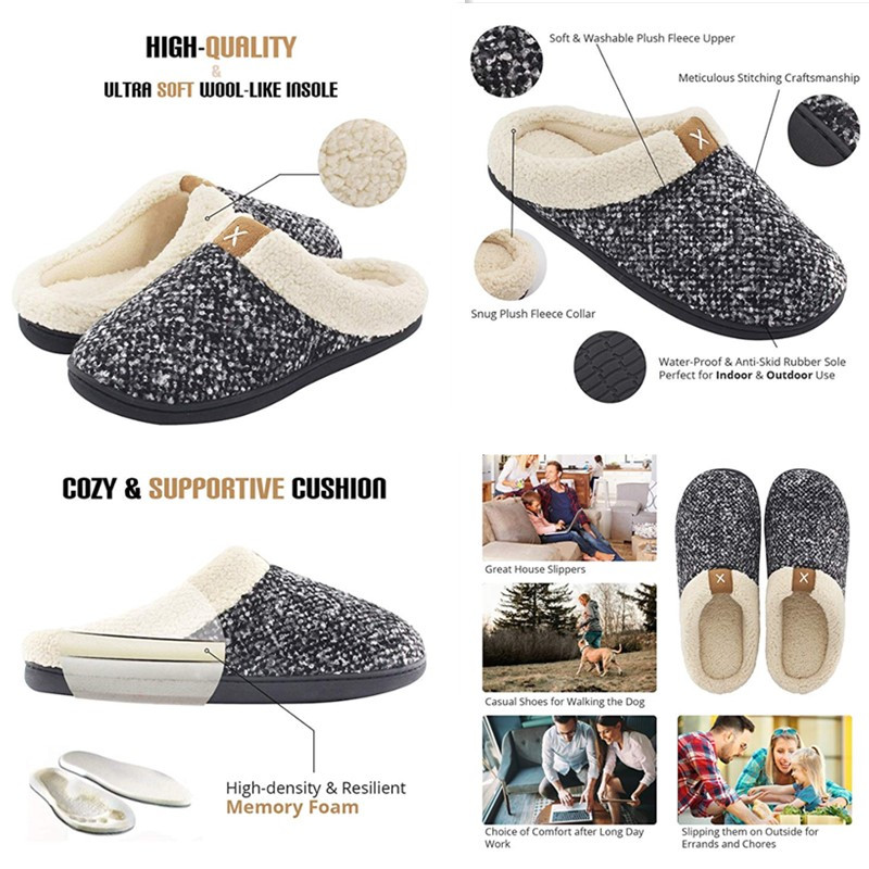 Description:It is easy slip-on design slippers, along with high-quality and comfort man-made fluffy plush fleece lining that encompasses your feet very well and offers soothing comfort.The light-weight and durable rubber sole makes the fuzzy knitted slippers perfect for indoor and outdoor family use. Anti-slip outsole allows for stepping noiselessly in the bedroom. Each of your steps will become steadier with slip-resistant texture on the bottom.