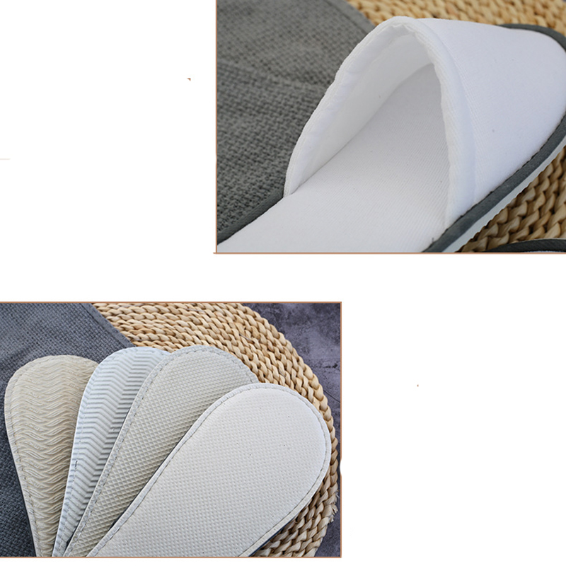 Description:If your customers want comfortable slippers, these hotel slippers are exactly what they need. The thicker slippers are more suitable for winter. Measuring 11 and 3/16 inches long and 4 and 1/2 inches wide, this size is perfect for most situations, and the slippers are made of 200 GSM velour material, as well as a 2 mm foam sandwich and a 5 mm thick EVA sole. What a great giveaway for hotels, resorts, spas, etc.!