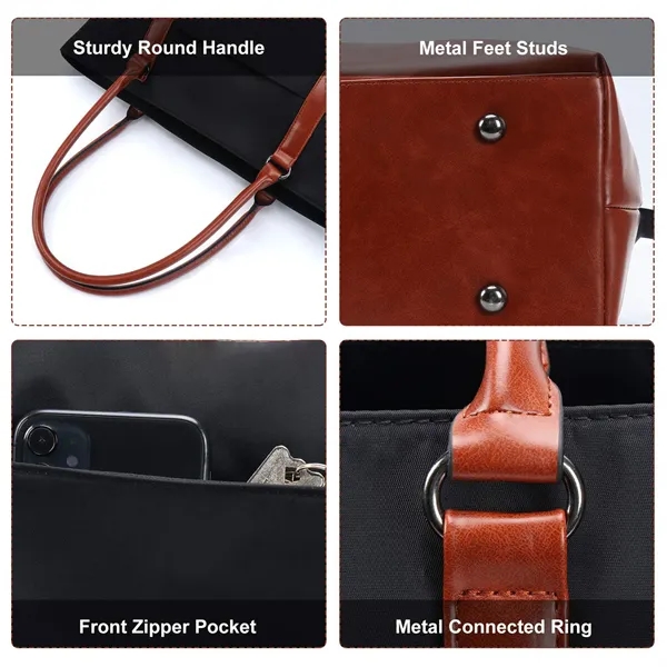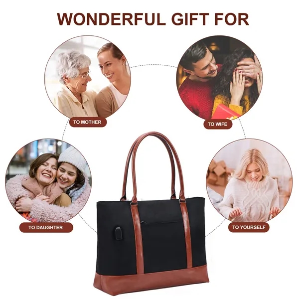 Description:laptop bags and totes has a multiple compartment and pockets, One padded laptop packet to protect with your laptop. Fits in 15.6 inch laptop. You can hold laptop, makeup pouch, mouse, power bank, binder, pen, wallet, water bottle, umbrella. Keep your items in regular, easy find what you need.Stylish laptop bags for women, black tote bag for women size: 16.5L x 6.2W x 13H, handle drop: 10. External USB port with set-in charging cable offers convenient charging your cellphone. Keep to have enough power in your phone for daily, travel and business.Our large women work tote bag equiped with heavy duty zipper system. The carryall bag can be opened and closed smoothly. Inside dividers are wrapped with thick pad to make sure your computer is well protected .