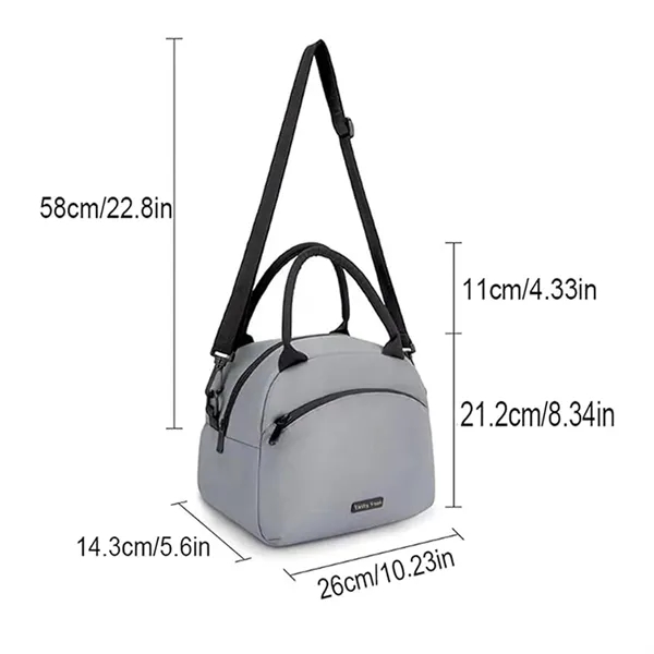 Description:This insulated lunch bag boasts a sturdy handle,reinforced with high-pressure sewing for durability,plus dual zipper pockets to keep food and utensils separate.The front pocket is convenient for essentials,while the adjustable,detachable shoulder strap provides carrying flexibility.Crafted from high-density,spill-resistant material,it’s easy to wipe clean and ideal for meals on the go.With a trendy two-tone look and a range of colors,it’s a perfect gift for any event,from birthdays to Christmas,for both women and men.