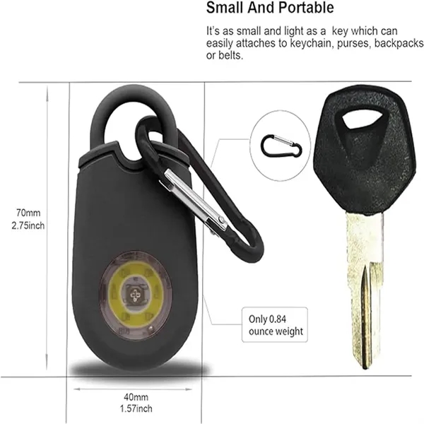 Description:Our Police mini personal alarm for self defense is one of the loudest personal safety alarm on the market!When threatened, activate Police LOUD siren and flashing sos-light to create a diversion and to help deter an attack. The security alarm is as loud and can be heard at a long distance!Can also help to protect you! When shined in the eyes of an attacker, can have a temporary blinding effect making it easy for you to run away or call for help!Mold this personal security alarm to your hand for a firm and comfortable grip.Our personal alarm keychain is powered by 3 pcs LR44 battery, long lasting & easy to replace. 2.76 x 1.46 x 0.52. Police pocket alarm easily fits into a pocket or purse.Emergency alarm has IPX4 rating that can withstand extreme weather conditions, bumps, and falls.