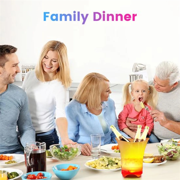 Description:Brighten up your social gatherings with our LED ice bucket, featuring lights that changes to seven different colors, automatically adjusting to suit any occasion and atmosphere! Ensure the installed battery has enough power for optimal color conversion. Equipped with a wireless speaker, this ice bucket is perfect for karaoke bars! It keeps your ice cool and clean while looking sleek and stylish both indoors and outdoors. With a 5L capacity, it can hold at least two 750ml bottles, six 330ml cans, four wine bottles, or three large champagne bottles, making it the standard configuration for bars and KTVs.