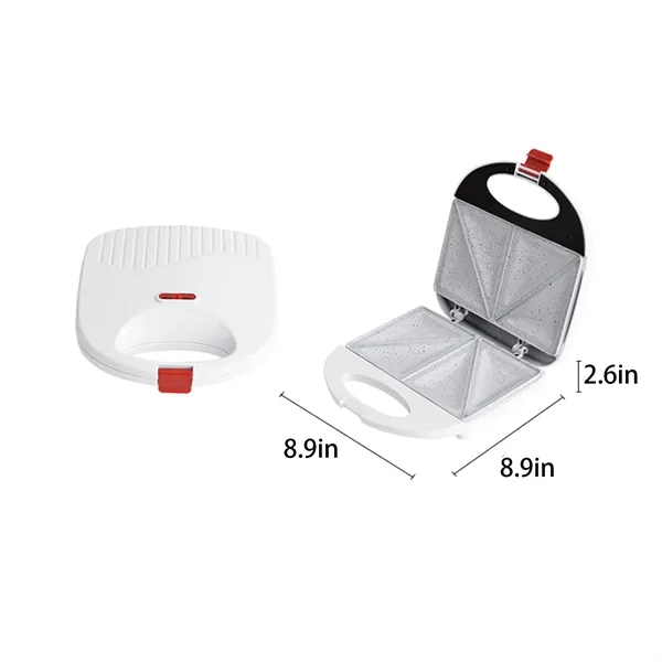 Description:Make hot sandwiches in minutes with this compact sandwich press, perfect for busy mornings or quick meals like omelets and French toast. Its heat-resistant stainless steel body and fast-heating element ensure even toasting, while the power indicator light and preheat light let you know when it’s ready to cook. The non-stick coating guarantees easy food release and hassle-free cleaning with just a damp cloth. Its compact, lightweight design makes it ideal for dorms, small apartments, and kitchens of any size. For safety, the cool-touch locking handle prevents overheating, and anti-skid feet keep it securely in place during use.Also available as a waffle maker and broiler.