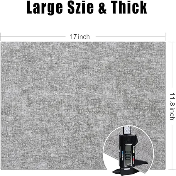 Description:Our placemats are made of eco-friendly faux leather. Fine workmanship ensures excellent quality and long-lasting durability, bringing more fun to your meals and protecting your dining table from scratches and stains.Our high-quality table mats measures 17 x 11.8 x 0.08 inches. This thickness can protect your delicate wooden dining table from white marks. Maximum heat resistance up to 212 F (100 C).which are waterproof and easy to clean. You can wipe them with a cloth or rinse them with water if they get dirty. But non-machine washable and non-microwaveable.The linen pattern textured design and multiple colors can easily match most tables. Suitable for indoor and outdoor. Can be used in restaurant, office, party, cafe and other scenes or as a holiday gift for family and friends.