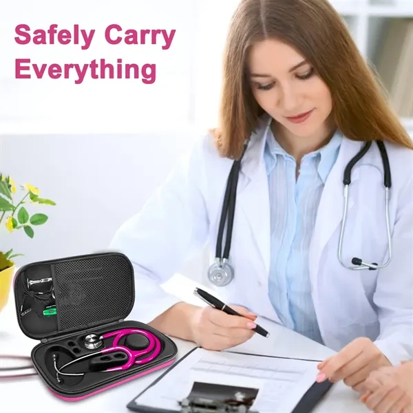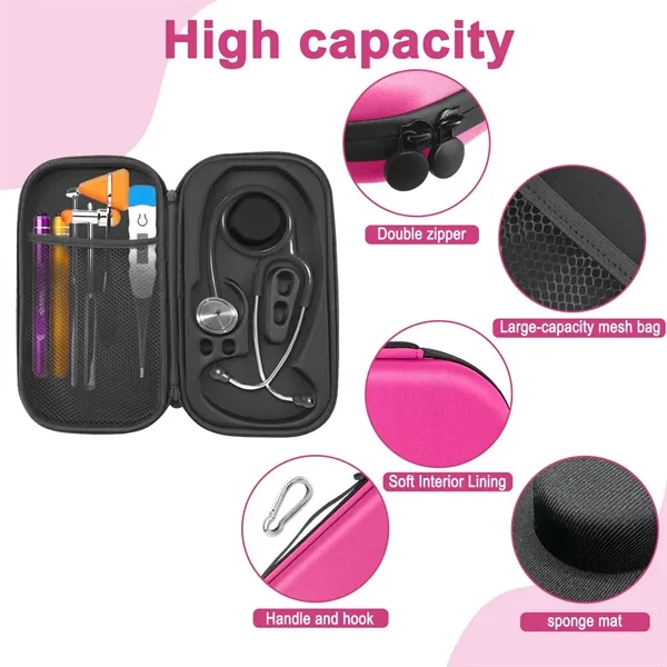 Description:This stethoscope carrying case is compatible with 3M Littmann stethoscopes and is designed to store both your stethoscope and essential accessories. Made from durable EVA materials, the case is semi-waterproof and shockproof, protecting your equipment from accidental bumps and damage. It offers ample storage space, with inner mesh pockets for organizing nurse’s tools such as pen lights and tweezers. A perfect gift for Christmas, Thanksgiving, Nurse Week, or nursing graduations, it’s ideal for nursing students or home health nurses.