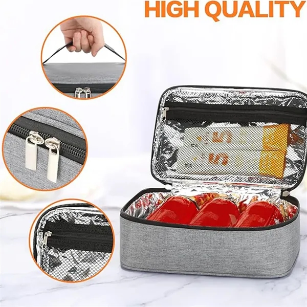 Description:This durable lunch bag is crafted from 600D polyester with a food-grade thickened aluminum foil lining and extra-thick 5mm PE foam padding, ensuring long-lasting use. The sturdy zippers prevent tearing, making it perfect for daily use. It effectively keeps your food warm or cold for hours, ideal for storing lunch, snacks, or drinks. The compact size (9.86.33.1 inches) fits a standard lunch box, juice carton, and utensils. With soft grip handles and an inner mesh pocket for ice packs or tableware, it’s both portable and easy to clean. Perfect for office, picnics, or keeping temperature-sensitive medicine.