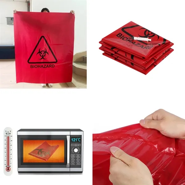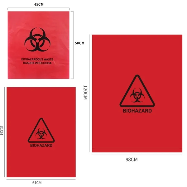 Description:The Heat-Resistant Medical Waste Bags are designed for safety and durability in medical environments. These red bags come in three sizes, each crafted from either PO or PP materials to ensure strength and resistance to heat. The smallest size is 17.7 inches by 19.7 inches with a single-layer thickness of 0.035 mm, the medium size is 24.0 inches by 32.0 inches with a single-layer thickness of 0.045 mm, and the largest size is 38.6 inches by 47.2 inches with a single-layer thickness of 0.05 mm. All bags are made to meet the strict standards required for medical waste disposal, providing a reliable solution for the safe containment and transportation of infectious materials.