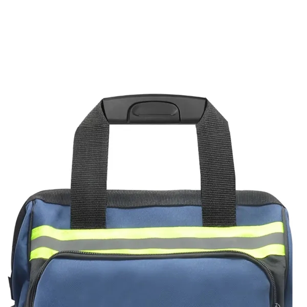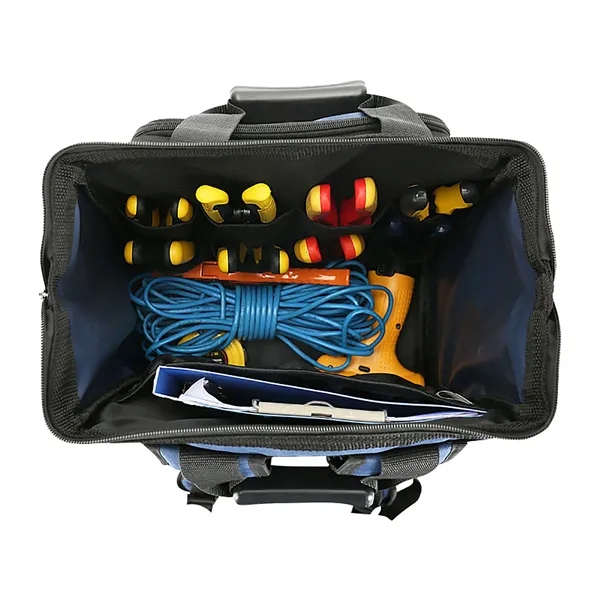 Description:The tool bag has padded web carring handles and adjustable shoulder straps and large pads on back.The tool bag base pad feet to help reduce wear and abrasion.construcrted of 600D polyester fabric thickening with wear-resistant waterproof.Our tool bags have reinforced pockets and zippers to withstand the toughest abuse.The tool bag upgrade special handle Long-term grip is not tired.