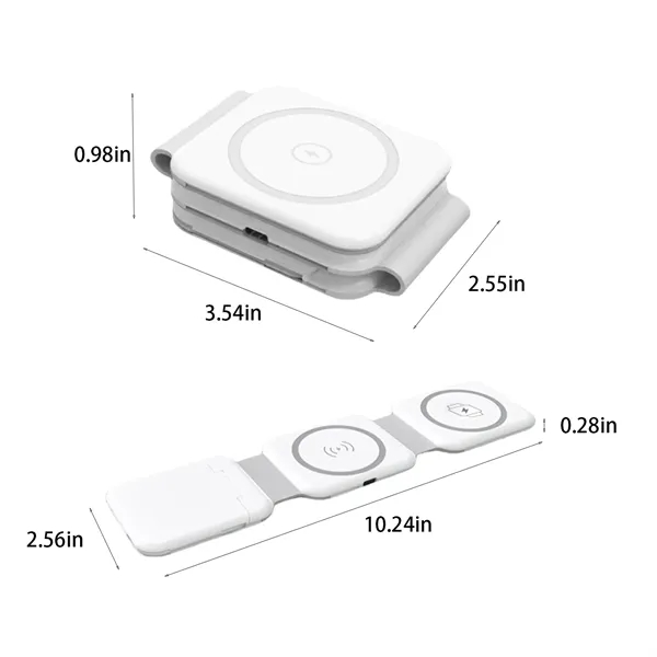 Description:Charge your iPhone 12 and newer models, Apple Watch, and AirPods wirelessly with a slim and elegant charger that seamlessly fits into any space. Enjoy fast charging that powers up your devices quickly without the hassle of cords, ensuring safe and efficient charging for all compatible devices. This compact and portable charger is ideal for home, office, or travel use, and it prevents your devices from sliding off during charging. Additionally, the LED indicator allows you to easily check the charging status.