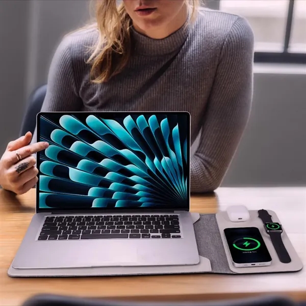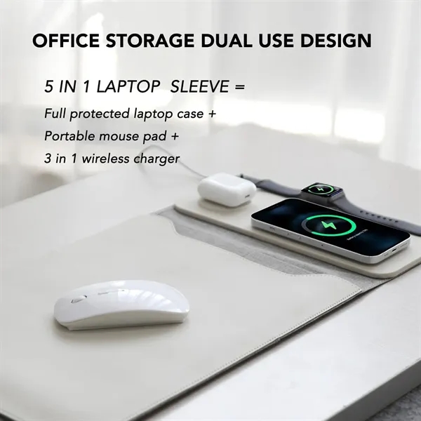 Description:Made of high-quality leather, it provides you with a good experience and lasting use experience. After wax treatment, it presents a subtle luster and silver embellishment, which provides strong protection for your equipment over time. Perfect for traveling, to ensure that your technology stays safe on the road. Use our wireless rechargeable laptop case to enhance your technology game. This multifunctional case combines protection, style and cutting-edge functions to ensure that your equipment is safe, fully charged and ready for any situation. This case has built-in wireless charging function, which can charge two devices at the same time. It is not only a sleeve, but also a convenient mouse pad, providing a smooth and efficient workspace.