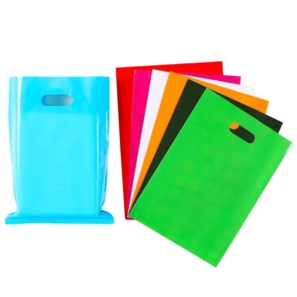 Description:Crafted from sturdy polyethylene plastic with convenient die cut handles, 9 .8Wx 13.7L, these versatile frosted bags with custom logo imprinting are the ideal solution for a diverse range of uses: from retail T-shirt bags and clothing packaging to trade show giveaways, parade treats, convention materials, and race day kits. Great for gift packing, promotional giveaway bags, party favor bags, or goody bags for kids birthday parties.Custom logo is welcome.