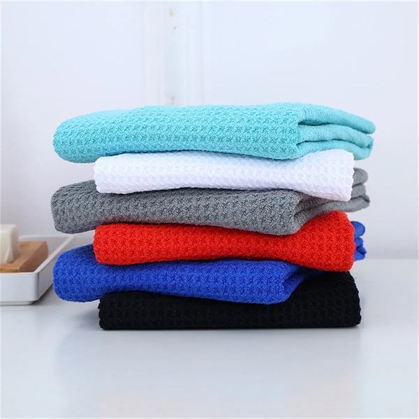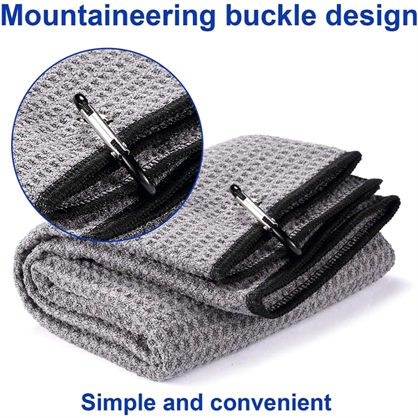 Description:Create a swinging promotion for your next corporate or charity golf tournament with these sporting accessories. This 15.7 x 23.6 sports towel is made of durable microfiber material with a textured waffle pattern that traps dirt and cleans up your clubs, balls, shoes, tees and other gear. Includes a grommet hole and an aluminum carabiner clip to attach to your bag or clubs. Available in assorted colors. Add your school, sports team, organizational or company logo or message to customize.