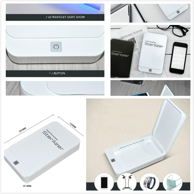Description:One machine is multi-purpose, enjoying healthy life. Besides mobile phones, it can also disinfect toothbrush, masks, jewelry, watches, headphones and other small items. Funny ultraviolet radiation, safety and environmental protection, sterilization rate up to 99.99%. Open the cover and close the UV automatically, protect the eyes from injury, magnetic control safety protection. Sterilization and aromatherapy one machine, aromatherapy synchronous, time as short as 8 minutes, support 6.5 inch or less of the phone.