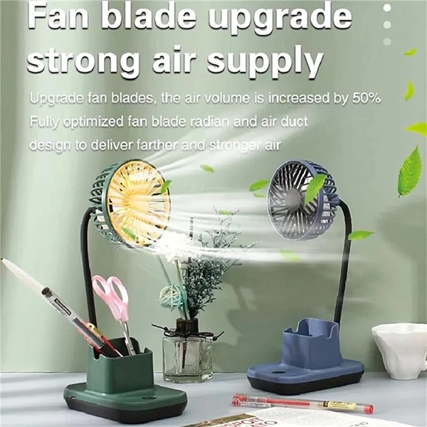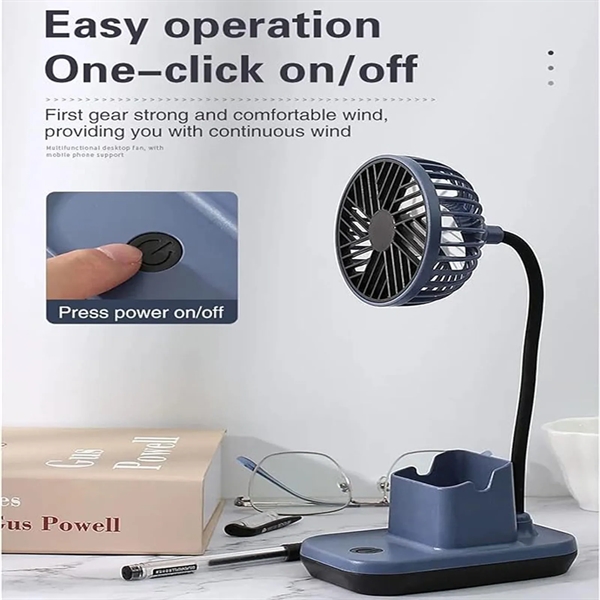 Description:This 3-in-1 desktop fan is a versatile solution for your workspace. Enjoy a quiet, interference-free breeze with simple one-button operation. Use it as a phone holder, pen holder, or adjustable fan with a 360-degree bendable silicone hose. The built-in battery offers multiple charging options, and the detachable mask is easy to clean. Choose from 3 colors and enjoy the convenience of this ABS fan with a phone stand, pen holder, and safe, flexible gooseneck arm. Simply plug it into a USB port and start cooling down!