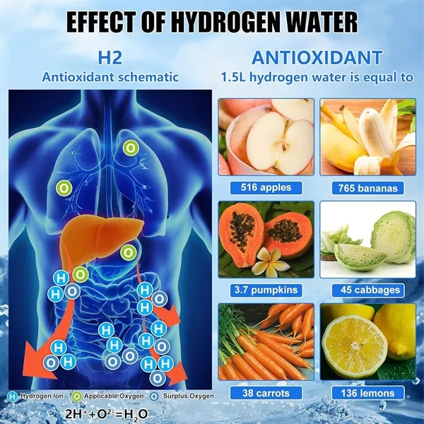 Description:Transform ordinary water into hydrogen-rich alkaline water with our Hydrogen Water Bottle. Utilizing advanced SPE and PEM technology, it electrolyzes water to produce high-concentration hydrogen, reducing oxidative stress and boosting your overall well-being. Easy to operate with a single-button start and a 3-minute electrolyzing cycle, it enhances water absorption, metabolism, sleep quality, and skin health. Featuring EVE pads for stability and slip resistance, it’s perfect for use at the office, on the go, or at home.