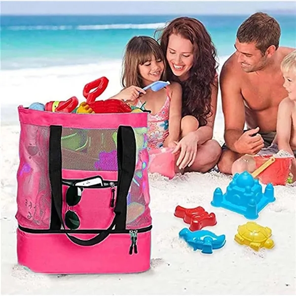 Description:The 2 in 1 Cooler Mesh Picnic Bag with Zipper is your perfect companion for outdoor adventures! This versatile mesh beach tote features an insulated layer to keep drinks cool and food fresh. The cold storage layer can also separate wet items from dry ones. With a handle strap and sealed double zipper, you can detach the cooler and mesh bag in just one minute. Made from durable canvas and grid fabric with reinforced handles, it can carry over a dozen bottles of water and food effortlessly. Its oversized capacity ensures you can take all your essentials in one convenient bag.