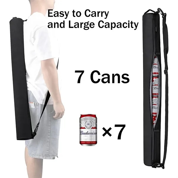 Description:Elevate your golf game with our golf cooler bag, designed to fit most golf bags including stand-up, cart, and Sunday bags. Measuring 32.7 L and 3.1 in diameter, it holds up to 7 cans of your favorite beverages. Made from durable 600D Oxford cloth, this cooler is both heat-insulating and waterproof, ensuring your drinks stay cool and are easy to clean. The inner lining provides excellent thermal insulation. Equipped with a top handle and adjustable shoulder strap for easy carrying, it’s perfect for championships, parties, or as a thoughtful gift for golfers.