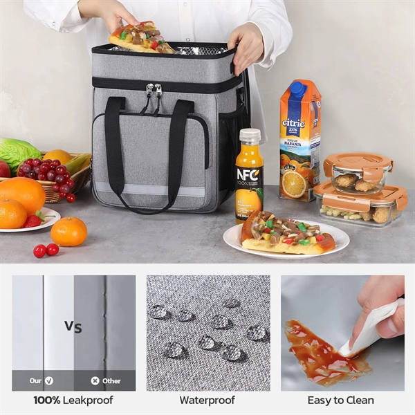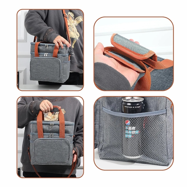 Description:This double-layered insulated lunch bag offers separate compartments for versatile food and drink storage. Its aluminum foil and PEVA lining ensure optimal insulation, keeping meals fresh and cool. Designed for individuals 6 years and older, it can be carried by hand or worn cross-body with its adjustable shoulder strap. Ideal for outdoor activities like picnics, camping, and hiking, the bag features quality, easy-to-clean materials, secure zipper closure, and multiple pockets for added storage. Durable and practical, it’s perfect for both outdoor adventures and daily use, keeping your meals at the ideal temperature on-the-go.