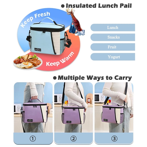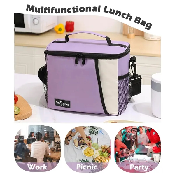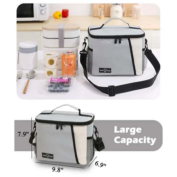 Description:This insulated lunch bag, crafted from durable oxford cloth, is designed for daily use. The PEVA-lined interior is leak-proof, keeping spills contained while maintaining your food’s temperature. Measuring 9.8” x 6.9” x 7.9”, it offers ample space for your meals, snacks, and drinks—ideal for work, beach trips, or picnics. Additional pockets help keep you organized, and the detachable shoulder strap and sturdy handle provide versatile carrying options.